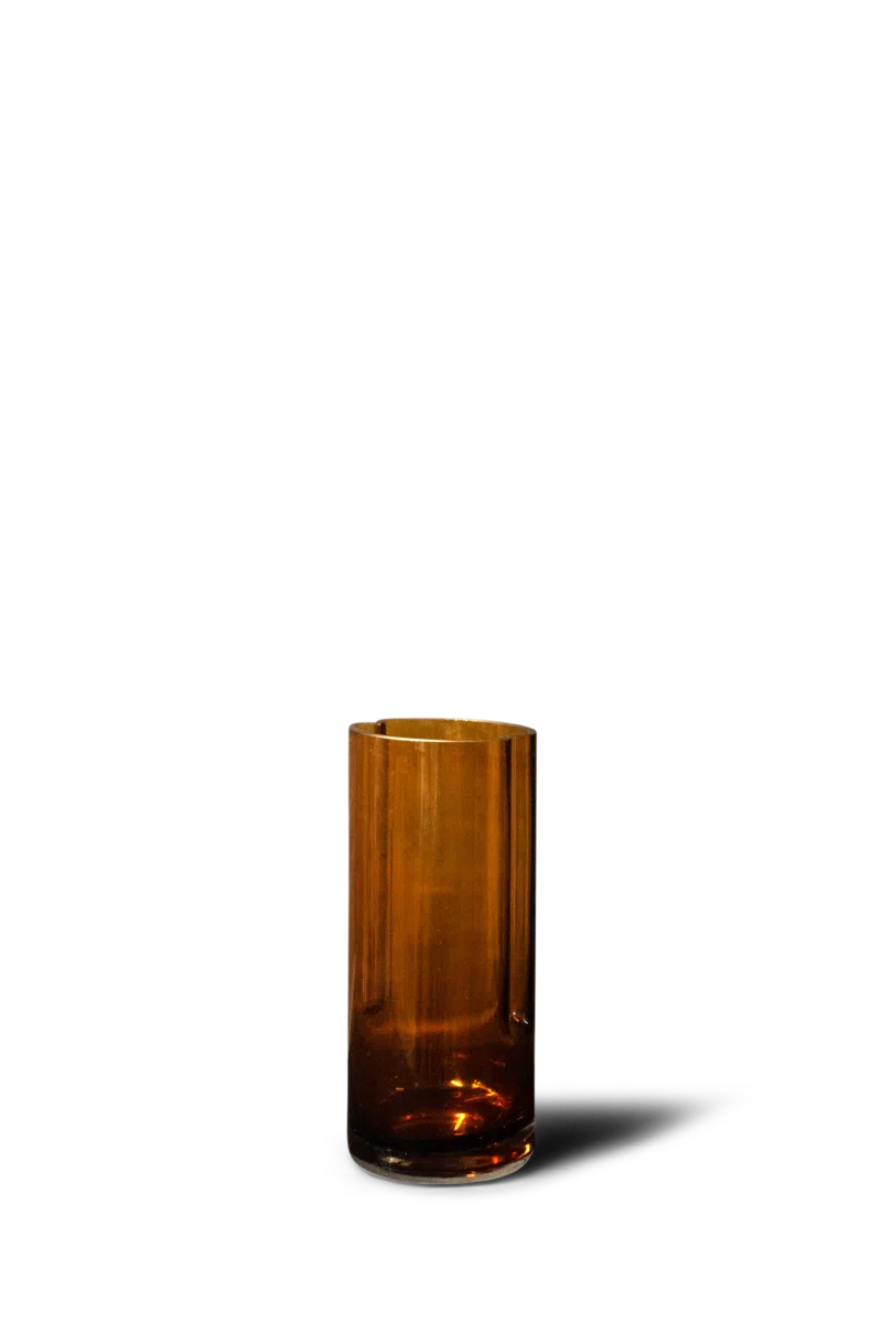 Glazen vaas met een bruine, transparante afwerking. Kan ook gebruikt worden als kaarsen- of theelichthouder.
